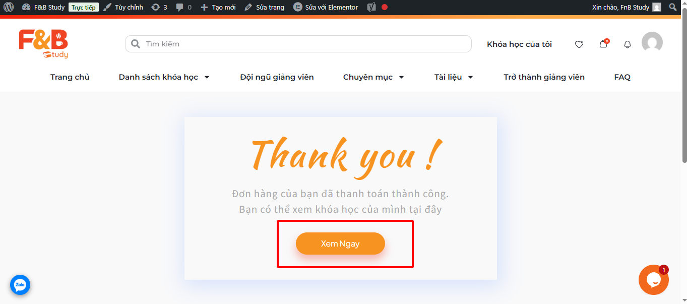 Sau khi thanh toán thành công, bạn có thể bắt đầu học ngay trên nền tảng: