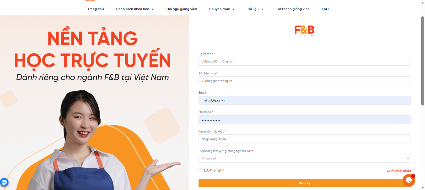 1. Các bước đăng ký khóa học miễn phí trên nền tảng F&B Study