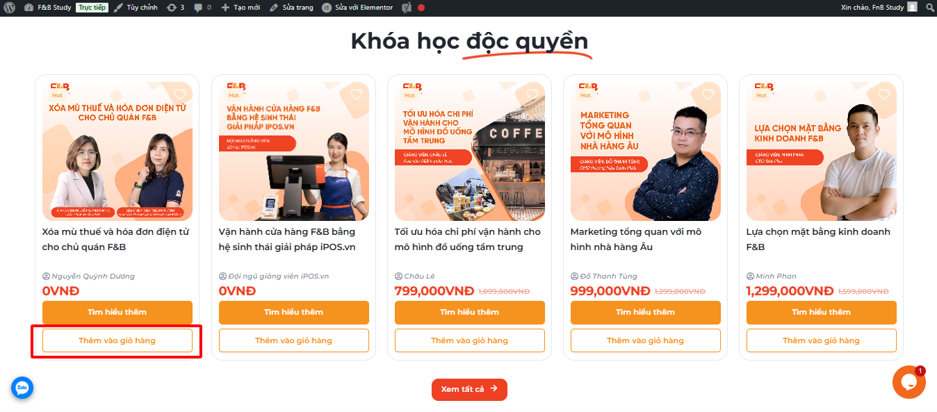 - Lựa chọn khóa học bạn quan tâm và nhấn “Thêm vào giỏ hàng”